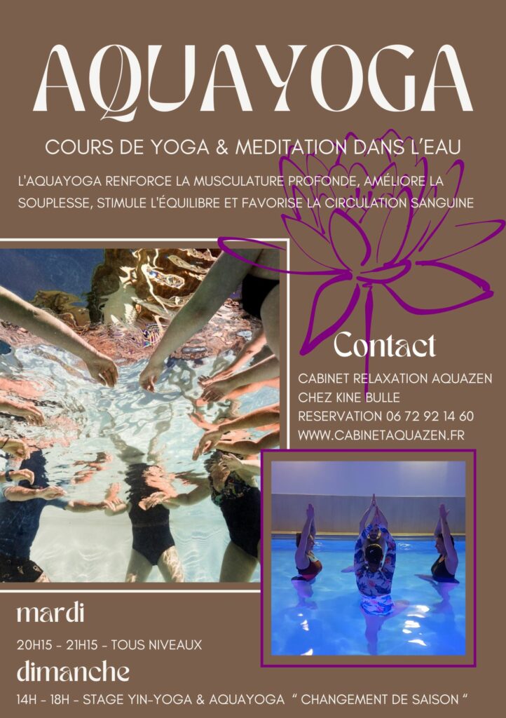 COURS d’aquayoga le mardi à 20H15 en bassin d’eau chaude cocooning